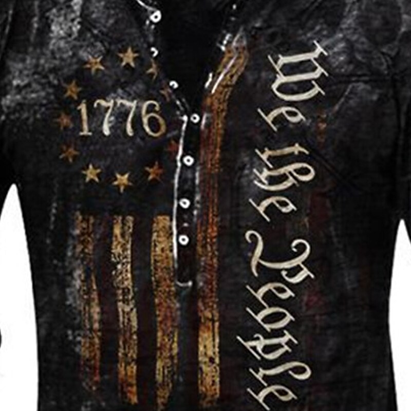 Men's Henley Shirt Graphic Tee 100% Cotton Acid Wash Shirt Graphic Prints National Flag Henley Hot Stamping Street Vacation Short Sleeves Print Top