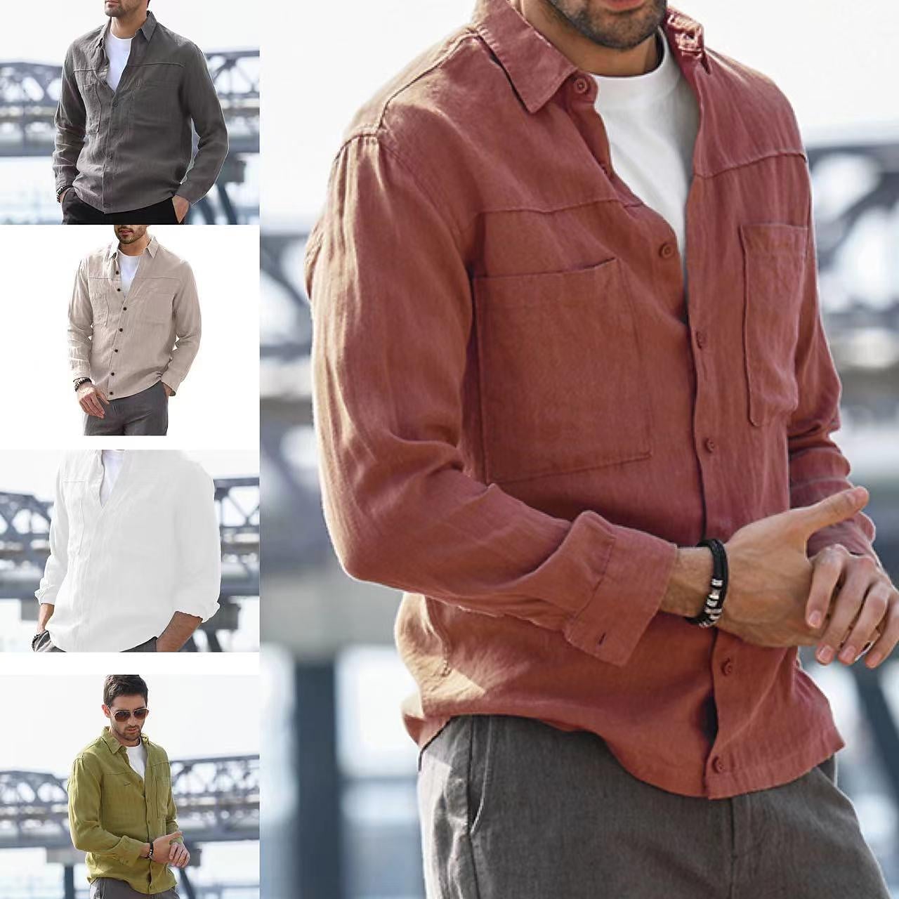 Men's Solid Color Collar Street Long Sleeve Cotton Lightweight Shirts