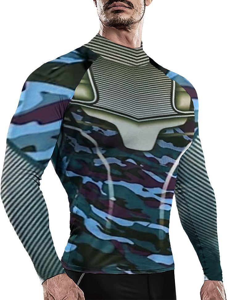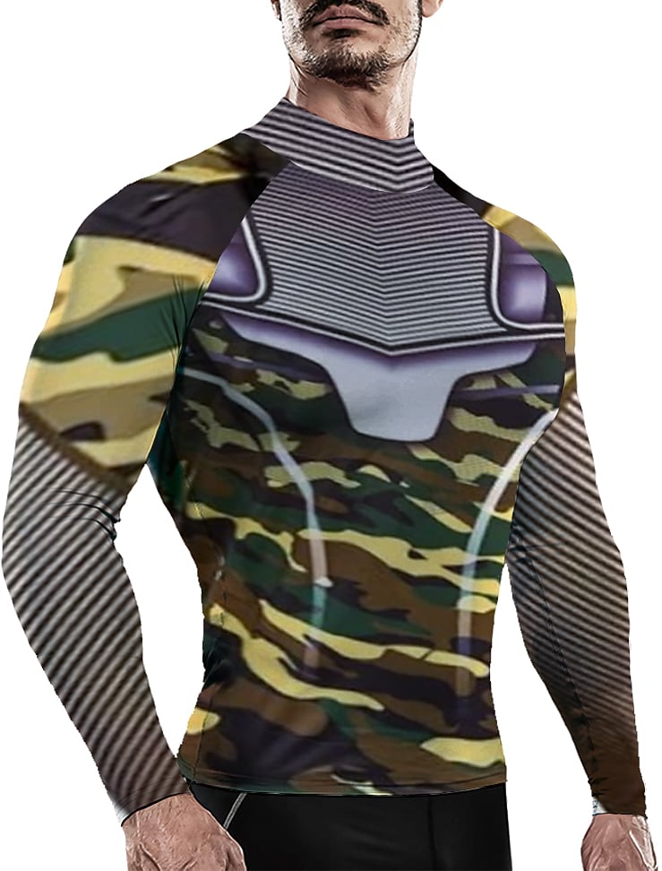 Men's Athletic Camo Seamless Long Sleeve Breathable Base Gym Shirt
