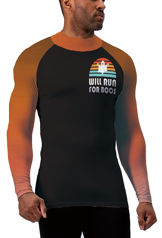 Men's Pumpkin Print Long Sleeve Running Gym Breathable Sportwear