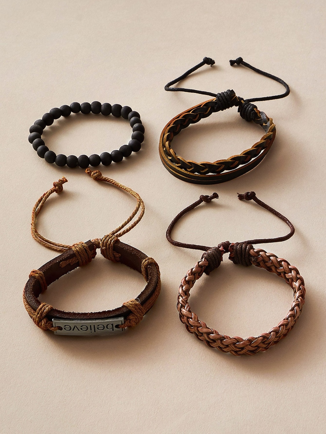 4PCS Leather Bracelet Set Braided Birthday Statement Elegant Fashion Holiday Leather Bracelet Jewelry Brown For Anniversary Gift Date Birthday Festival