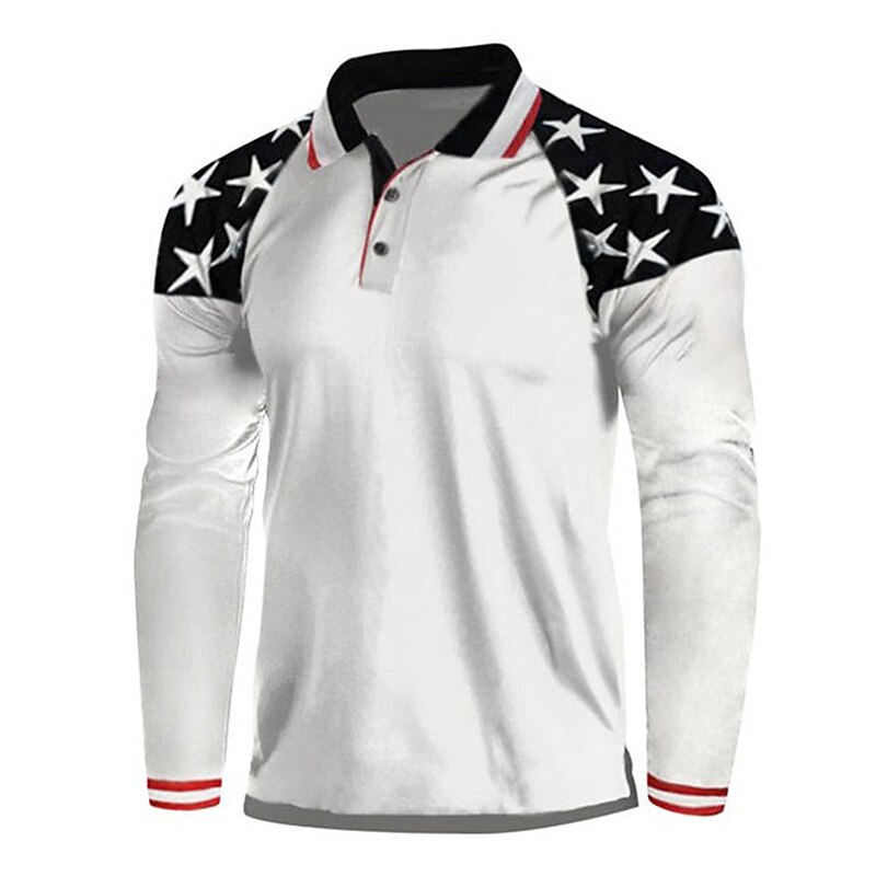 Star Casual Men's 3D Print Golf Polo Outdoor Casual Daily Streetwear Polyester Long Sleeve Turndown Polo Shirts Black White Wine Fall & Winter Euro 35 Micro-elastic Lapel Polo