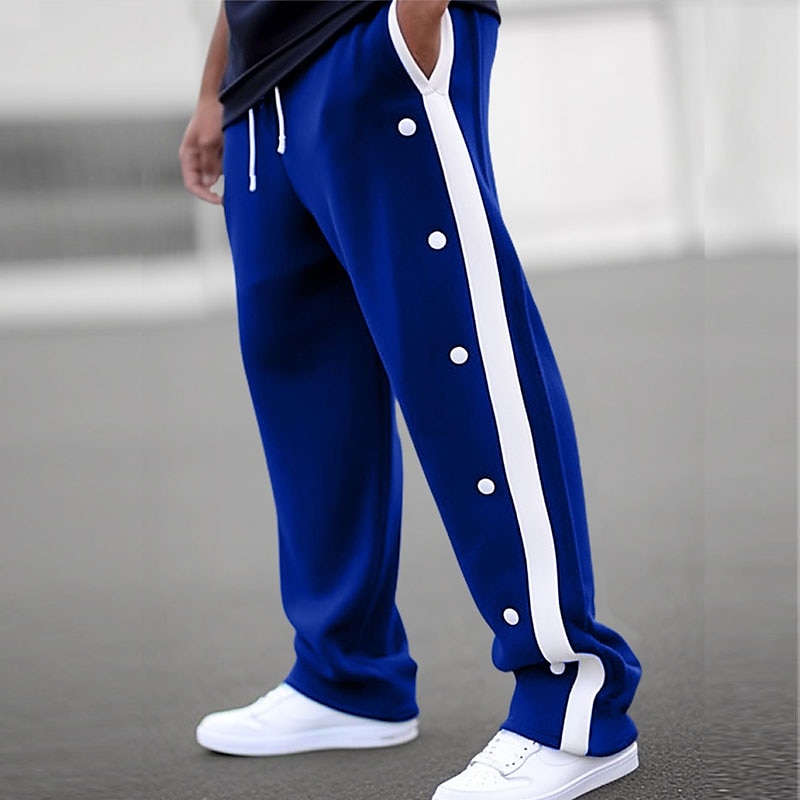 Men's Sweatpants Tear Away Pants Trousers Straight Leg Sweatpants Pocket Tear Away Side Button Plain Comfort Breathable Outdoor Daily Going out Fashion Casual Black Royal Blue