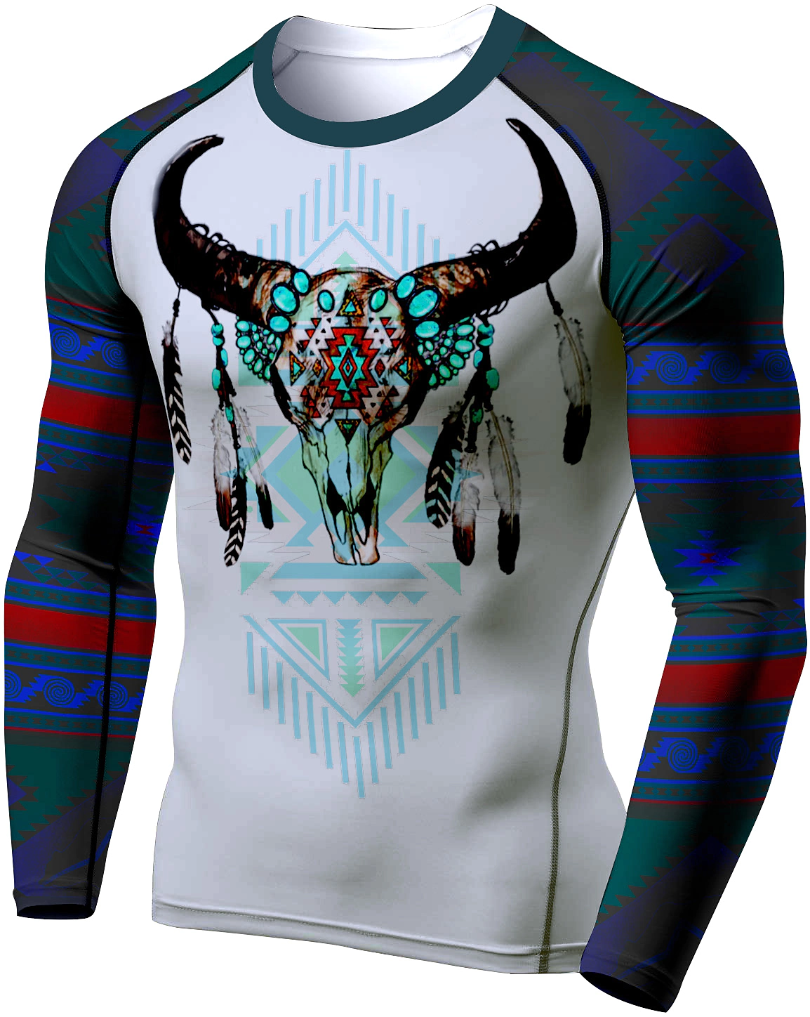 Men's Bull Head Print Running Round Neck Long Sleeve Tight Shirt