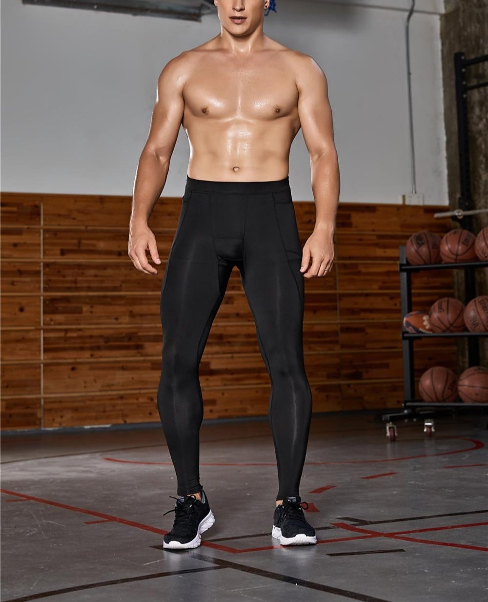 Men's Balck Running Tights Breathable Quick Dry Fitness Sport Pant