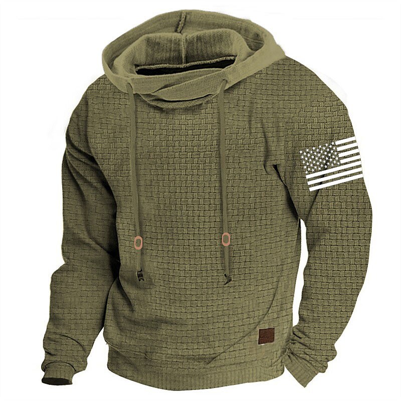 Men's Military Tactical Hoodie National Flag Fashion Daily Casual Men's Hoodie Sports Outdoor Holiday Vacation Waffle Hoodie Black Army Green Beige Hooded Knitting Print Spring & Fall Designer