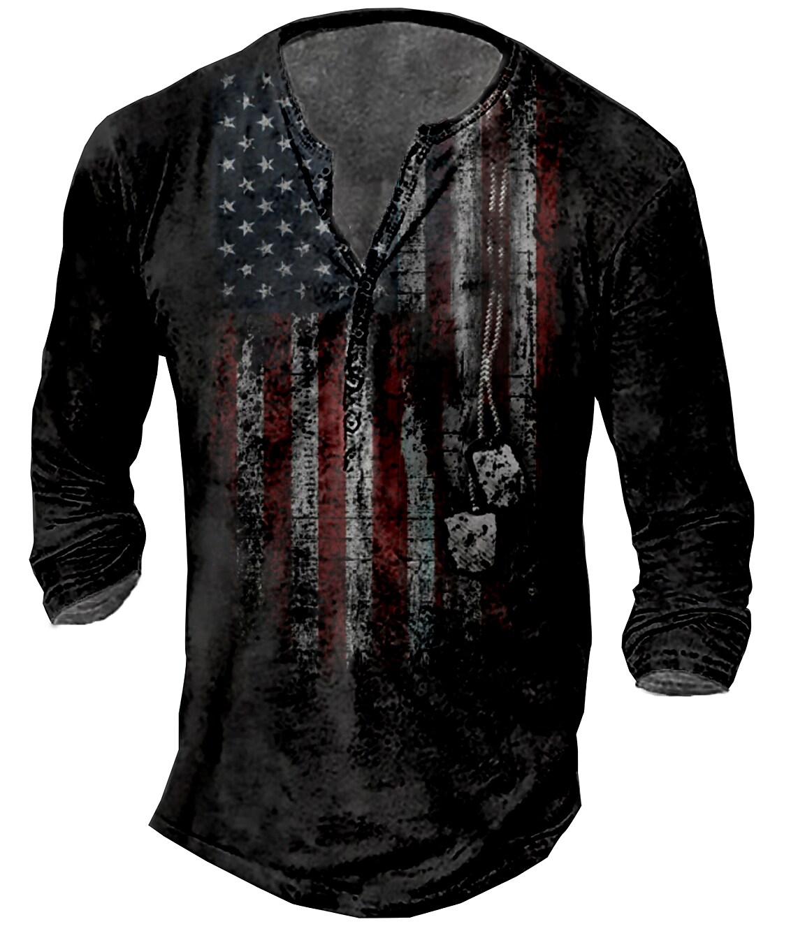Men's T shirt Tee Henley Shirt Tee Graphic American Flag Henley Plus Size Street Casual Long Sleeve Button-Down Print Top
