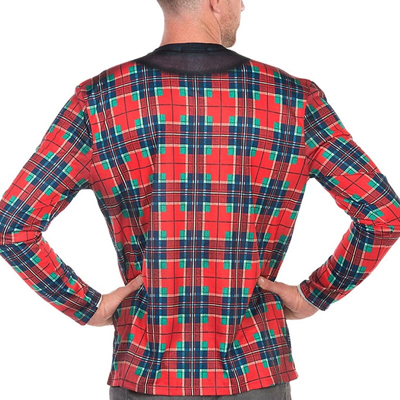 Graphic Plaid Santa Claus Fashion Designer Casual Men's 3D Print T shirt Tee Sports Outdoor Holiday Going out Christmas T shirt Black Red & White Long Sleeve Crew Neck Shirt Spring & Fall Clothing