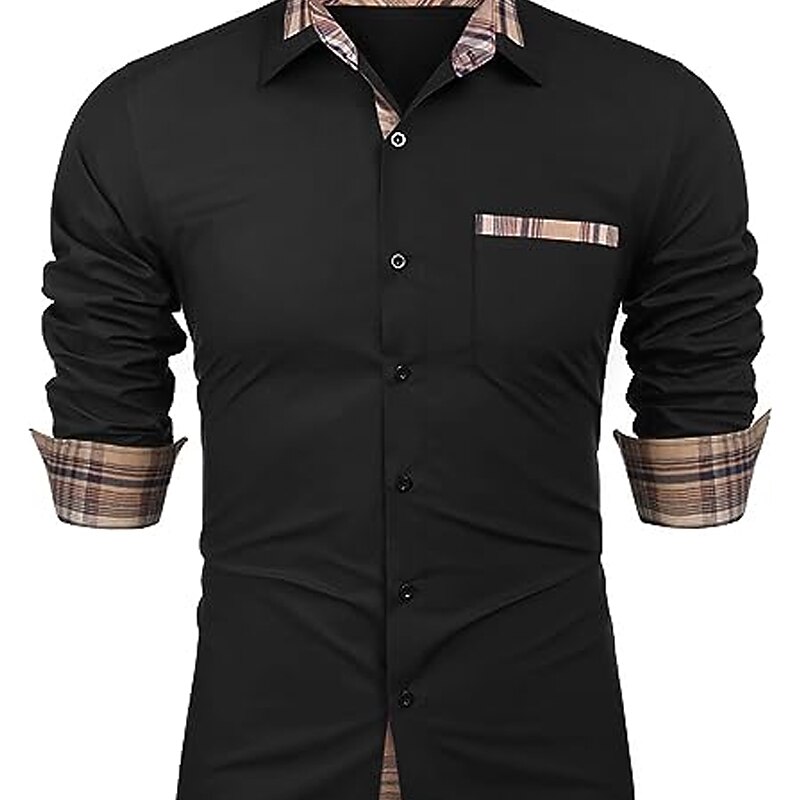 Men's Shirt Button Up Shirt Casual Shirt Black White Pink Navy Blue Long Sleeve Color Block Lapel Daily Vacation Front Pocket Clothing Apparel Fashion Casual Comfortable