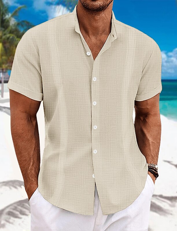 Men's Shirt Guayabera Shirt Linen Shirt Button Up Shirt Summer Shirt Beach Shirt Black White Blue Short Sleeve Plain Collar Summer Casual Daily Clothing Apparel