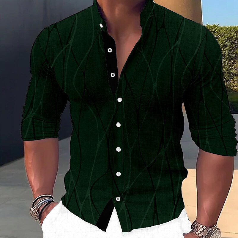 Men's Shirt Linen Shirt Graphic Geometry Stand Collar Black White Dark Green Brown Dark Blue Outdoor Street Long Sleeve Print Clothing Apparel Linen Shirt Fashion Streetwear Designer Casual