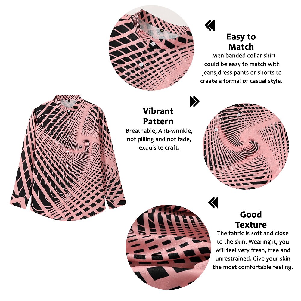 Men's Shirt Linen Shirt Optical Illusion GraphicStand Collar White Yellow Pink Blue Green Outdoor Street Long Sleeve Print Clothing Apparel Linen Shirt Fashion Streetwear Designer Casual