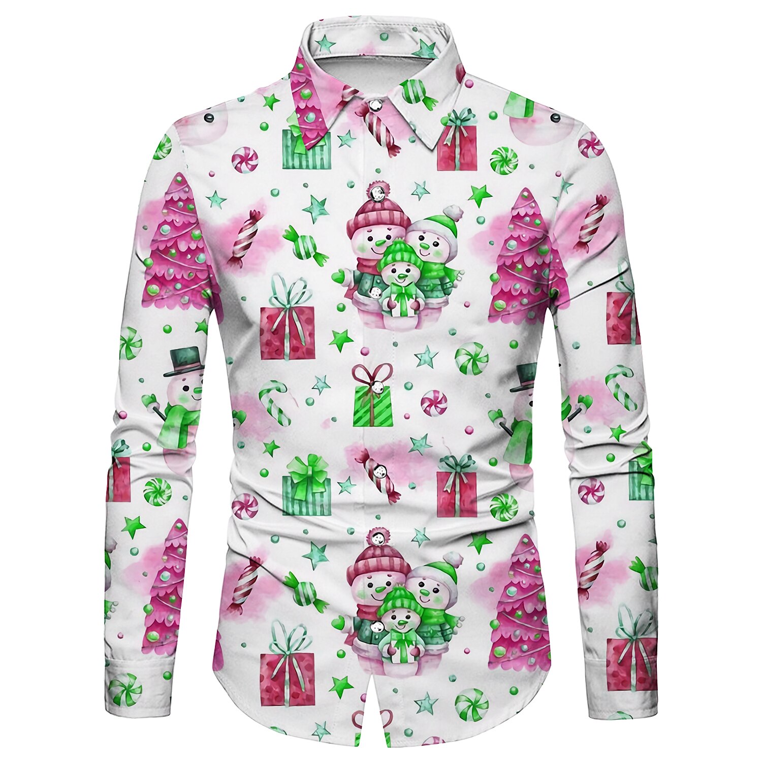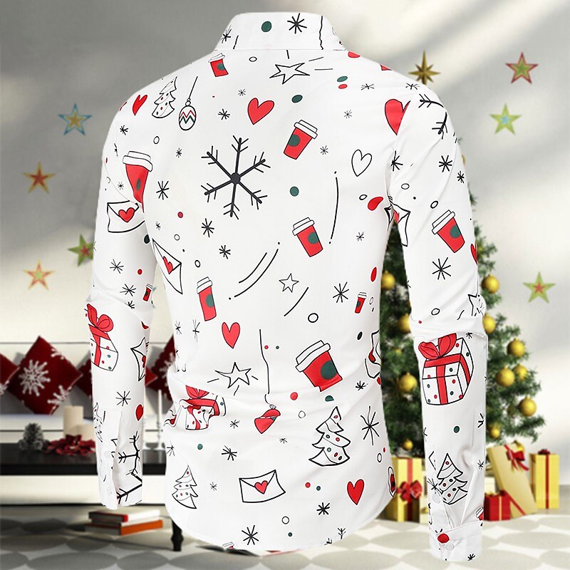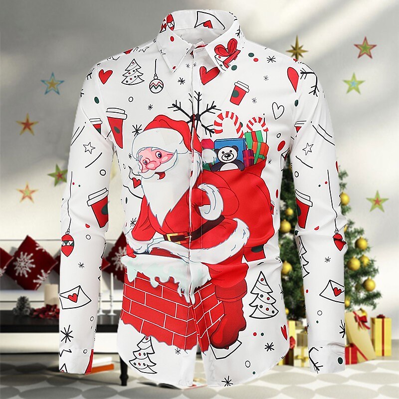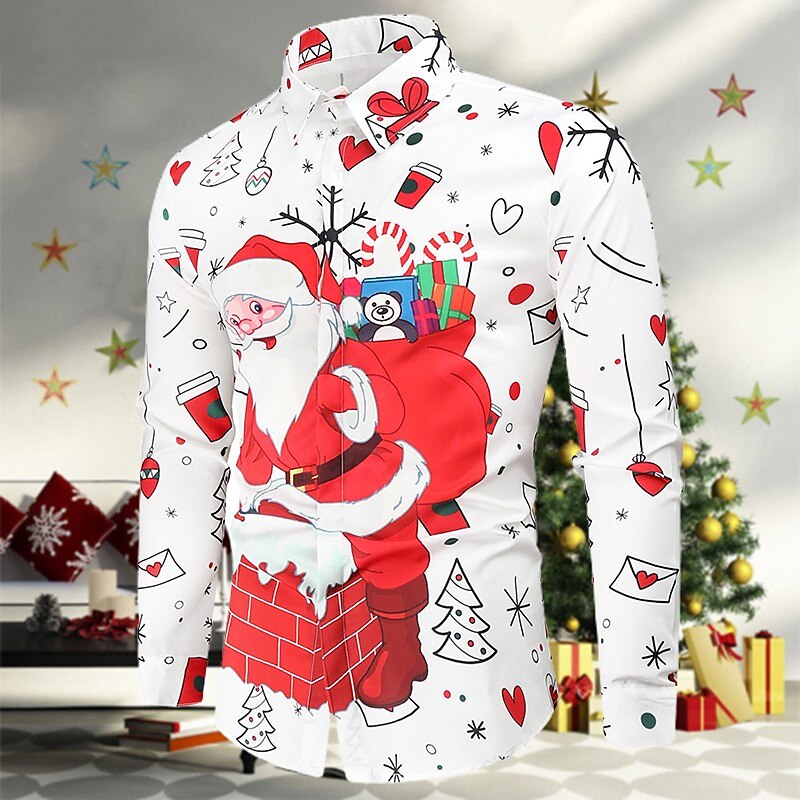 Men's Shirt Santa Claus Button Down Collar A B C D Christmas Long Sleeve Clothing Apparel Simple