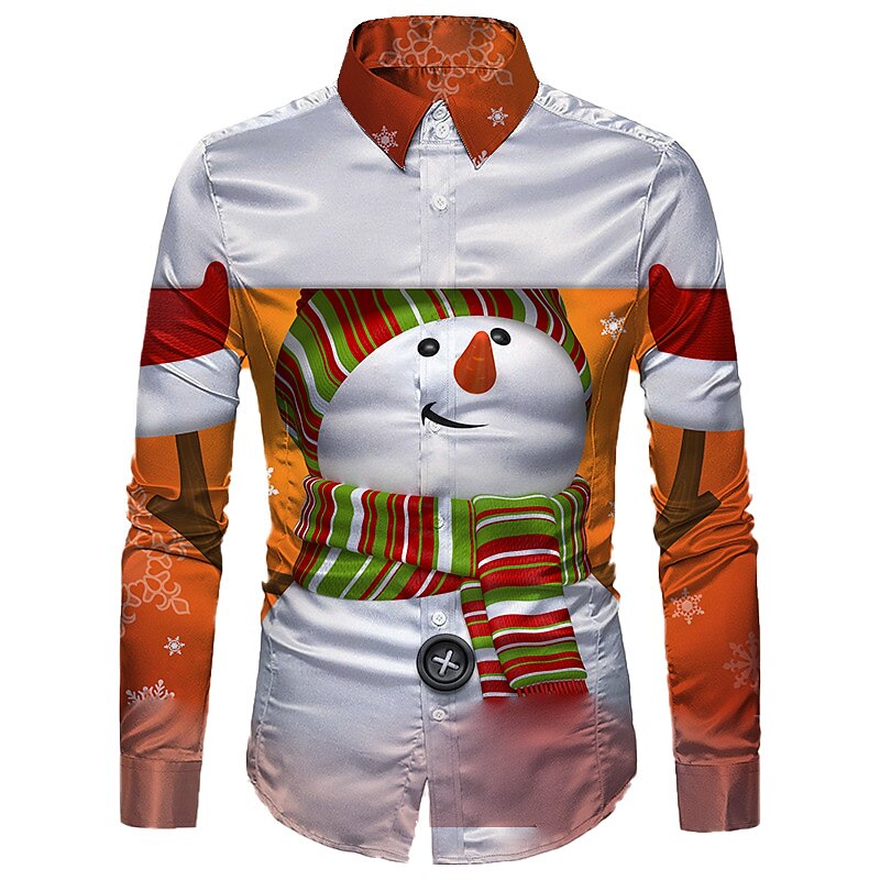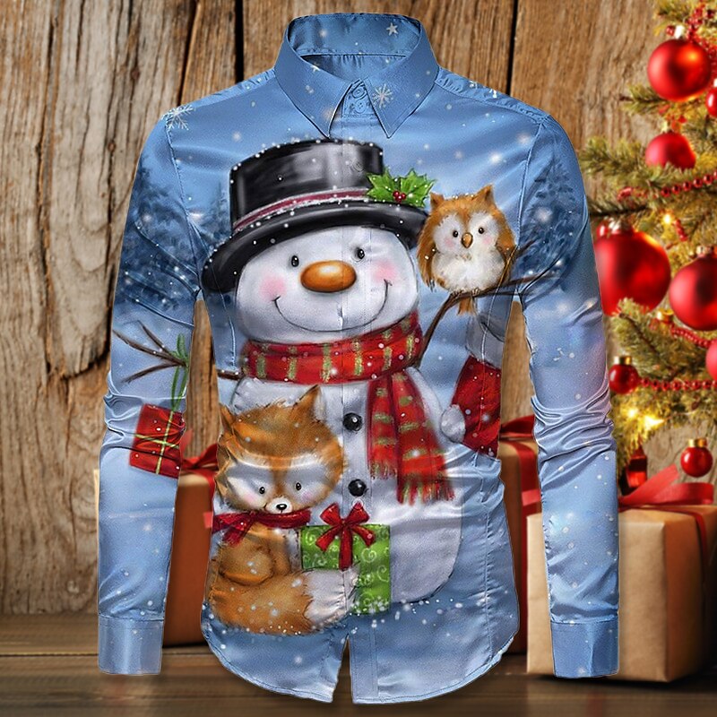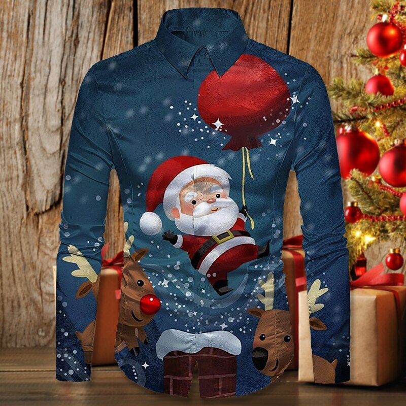 Men's Shirt Santa Claus Snowman Turndown Green Blue Royal Blue White 3D Print Outdoor Christmas Long Sleeve Button-Down Print Clothing Apparel Fashion Designer Casual Breathable