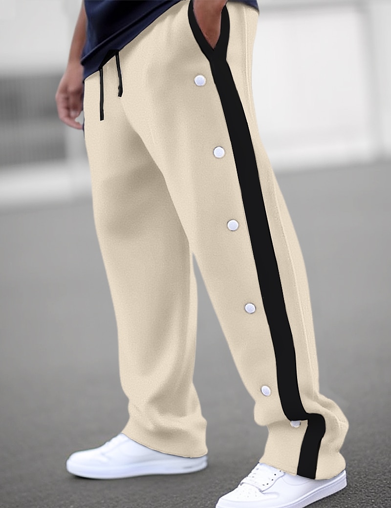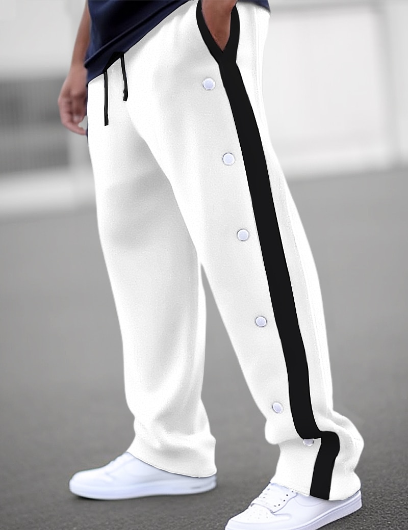 Men's Sweatpants Wide Leg Sweatpants Joggers Trousers Straight Leg Sweatpants Drawstring Elastic Waist Side Button Plain Comfort Breathable Outdoor Daily Going out Fashion Casual Black White