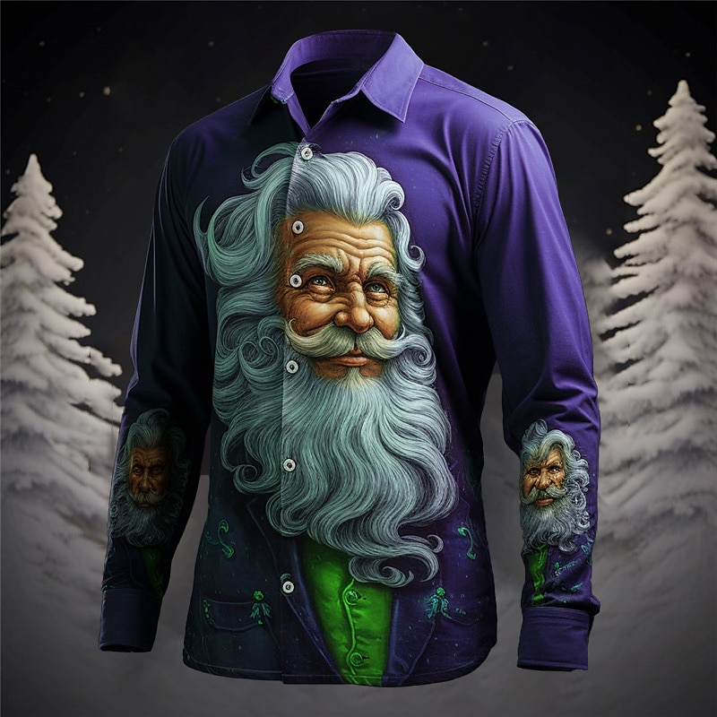 Santa Claus Casual Men's Shirt Outdoor Christmas Street Fall & Winter Turndown Long Sleeve Red Royal Blue Blue S M L Shirt