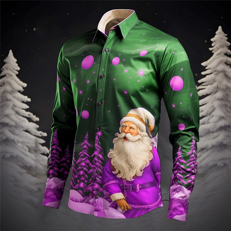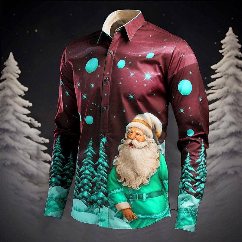 Santa Claus Christmas Tree Casual Men's Shirt Christmas Daily Wear Going out Fall & Winter Turndown Long Sleeve Gray+Purple, Yellow, Red S, M, L 4-Way Stretch Fabric Shirt