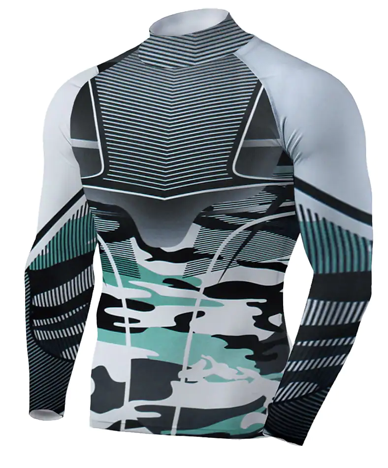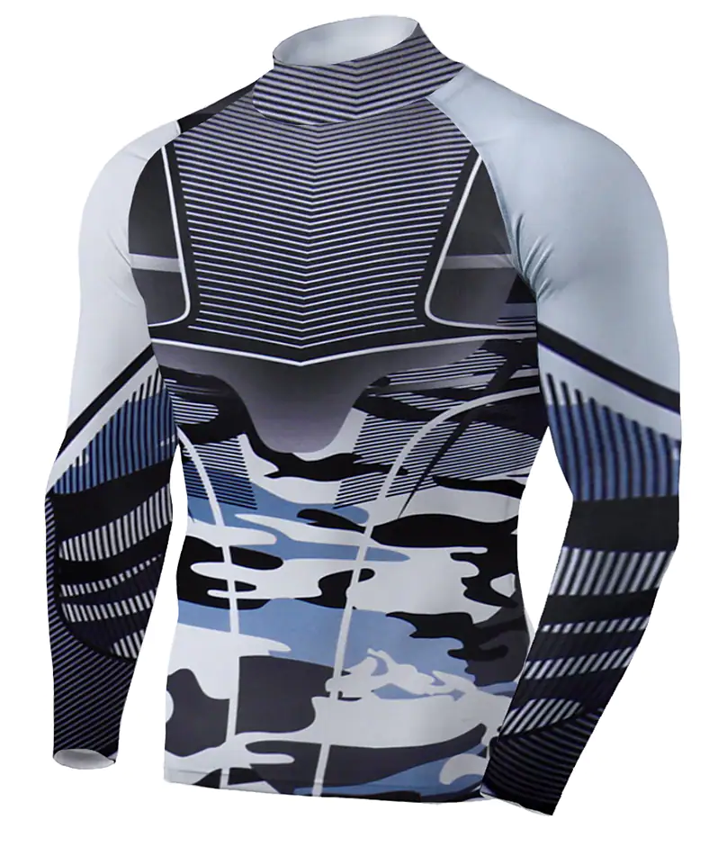 Men's Athletic Camo Seamless Long Sleeve Breathable Base Gym Shirt