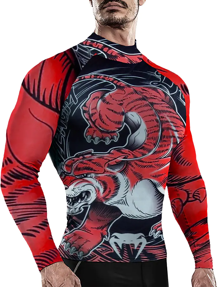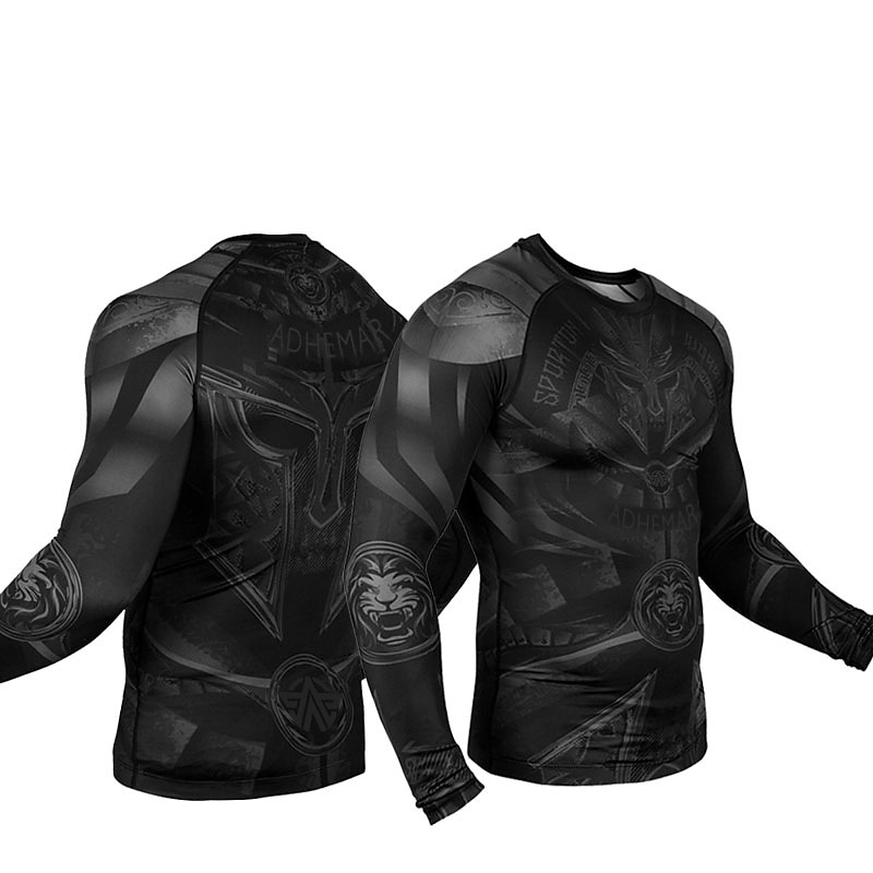 Men's Black Tiger Pattern Running Seamless Long Sleeve Sport Shirt