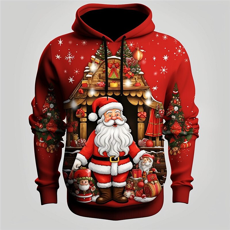 Graphic Santa Claus Merry Christmas Fashion Daily Basic Men's 3D Print Hoodie Pullover Sports Outdoor Holiday Vacation Hoodies Red / White Red Blue Hooded Print Spring & Fall Designer